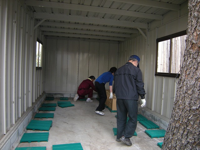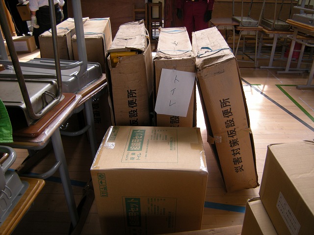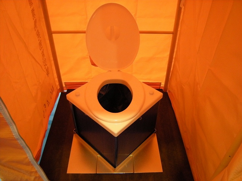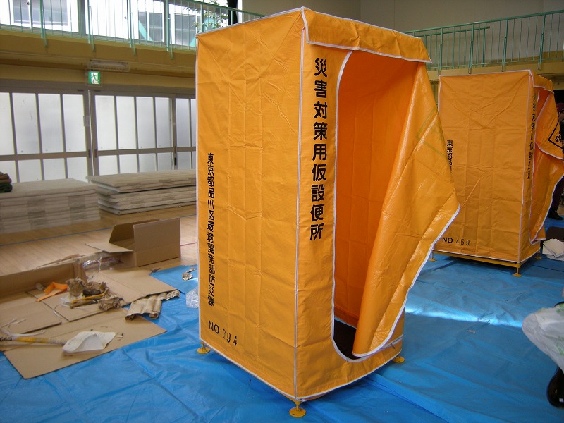 ③ 仮設トイレ組み立て(今年から洋式も導入)