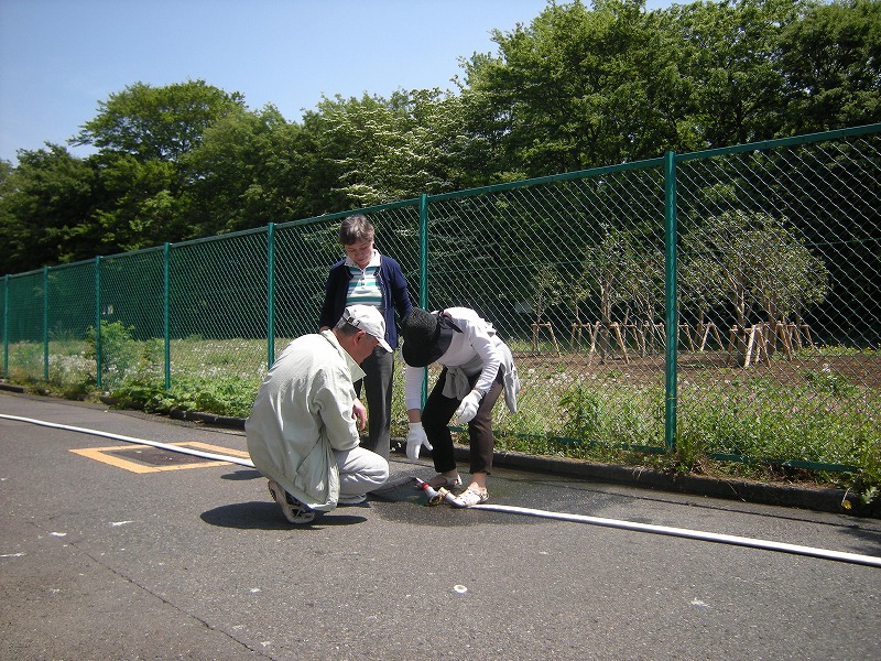 晴天の中、ミニポンプの操作訓練を実施しました。