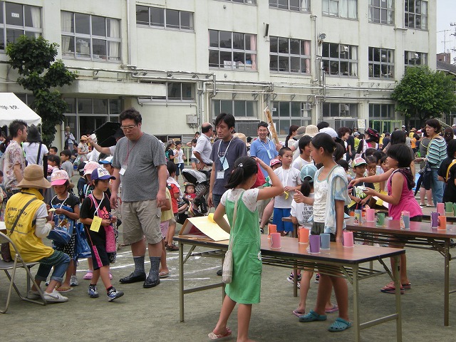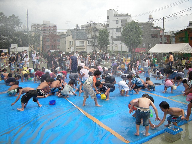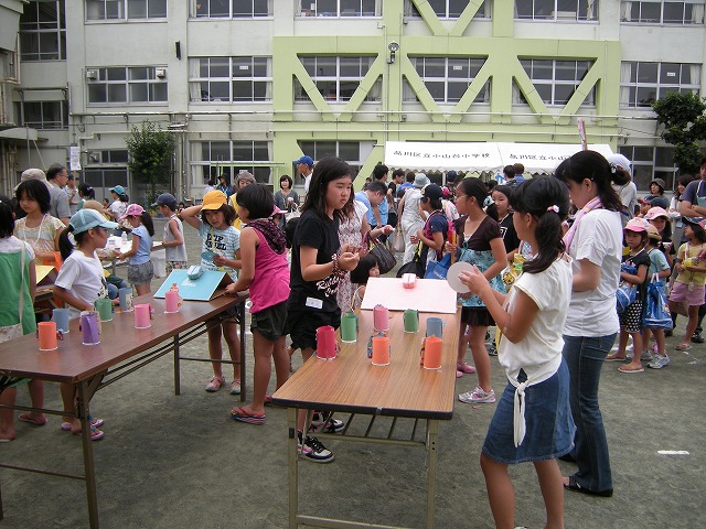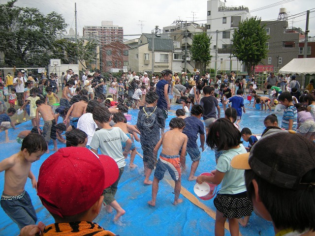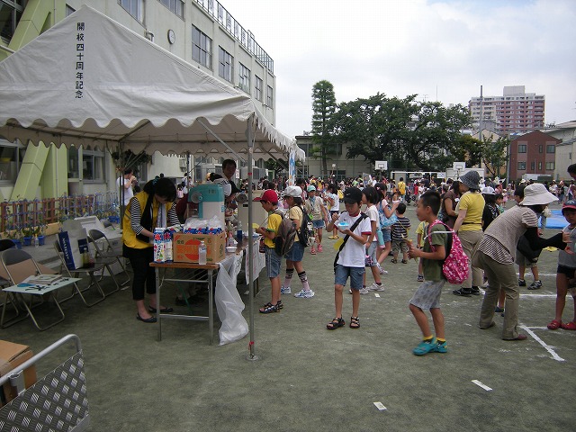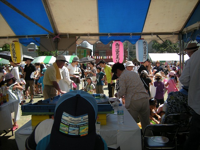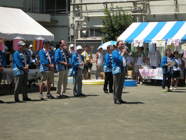 7月16日(土)品川区荏原第一地区の区民まつりが小山台小学校において、品川区と荏原第一地区連合町会と青少年地区委員会とPTAの皆さんと学校関係者の皆さんとその他消防署、健康推進委員等などの協力で盛大に開催されました。午後1時より浜野区長のご挨拶で始まりました。今回は東日本大震災の影響もあって、節電のため夜間の盆踊りは中止に決まり、開催時間も1時から5時までとなりました。