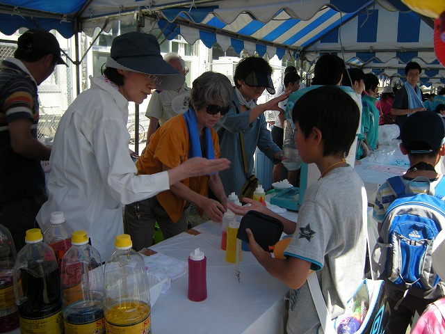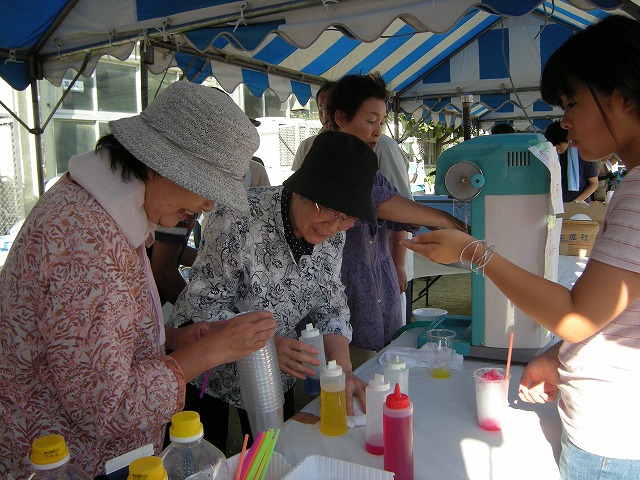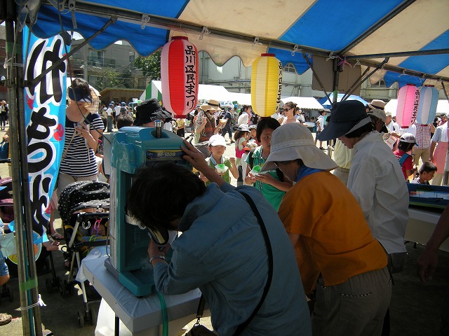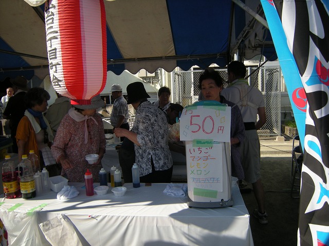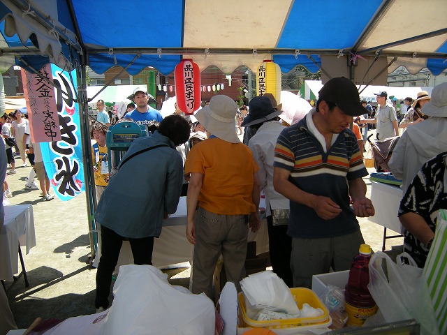 ブラスバンド、ダンス、ハワイアンダンス等々の演目や模擬店はカキ氷、いそべ餅、焼きそば、フランクフルト等のテントが校庭狭しと立ち並び、特に大変暑かったのでカキ氷のところは行列が終始絶えませんでした。参加された皆さんとても楽しそうでした。今年もまつりが終わり、学校も休みに入り、