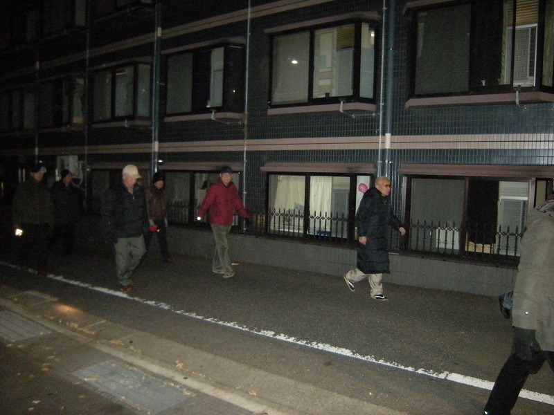 12月21日 飯野町会長のご挨拶があり、向笠防火部長の掛け声でパトロ-ル